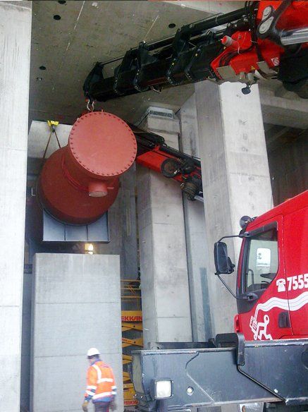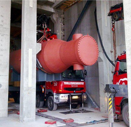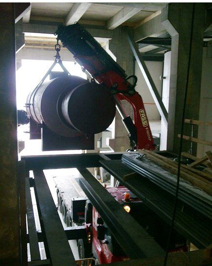 Voimalaitosten lämmönvaihtimien siirrot tehdään yleensä suurella nosturilla. Tällä kertaa asennuspaikka oli kuitenkin niin ahdas, että tarvittiin erikoisratkaisua.
